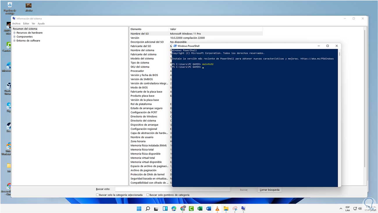 Ejecuta "msinfo32" en la consola de PowerShell:
