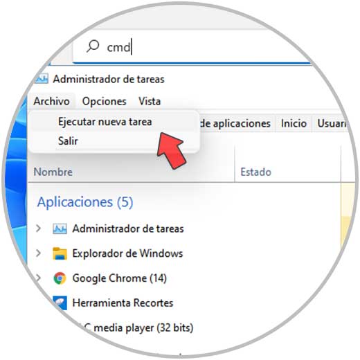 Vamos al menú "Archivo - Ejecutar nueva tarea":