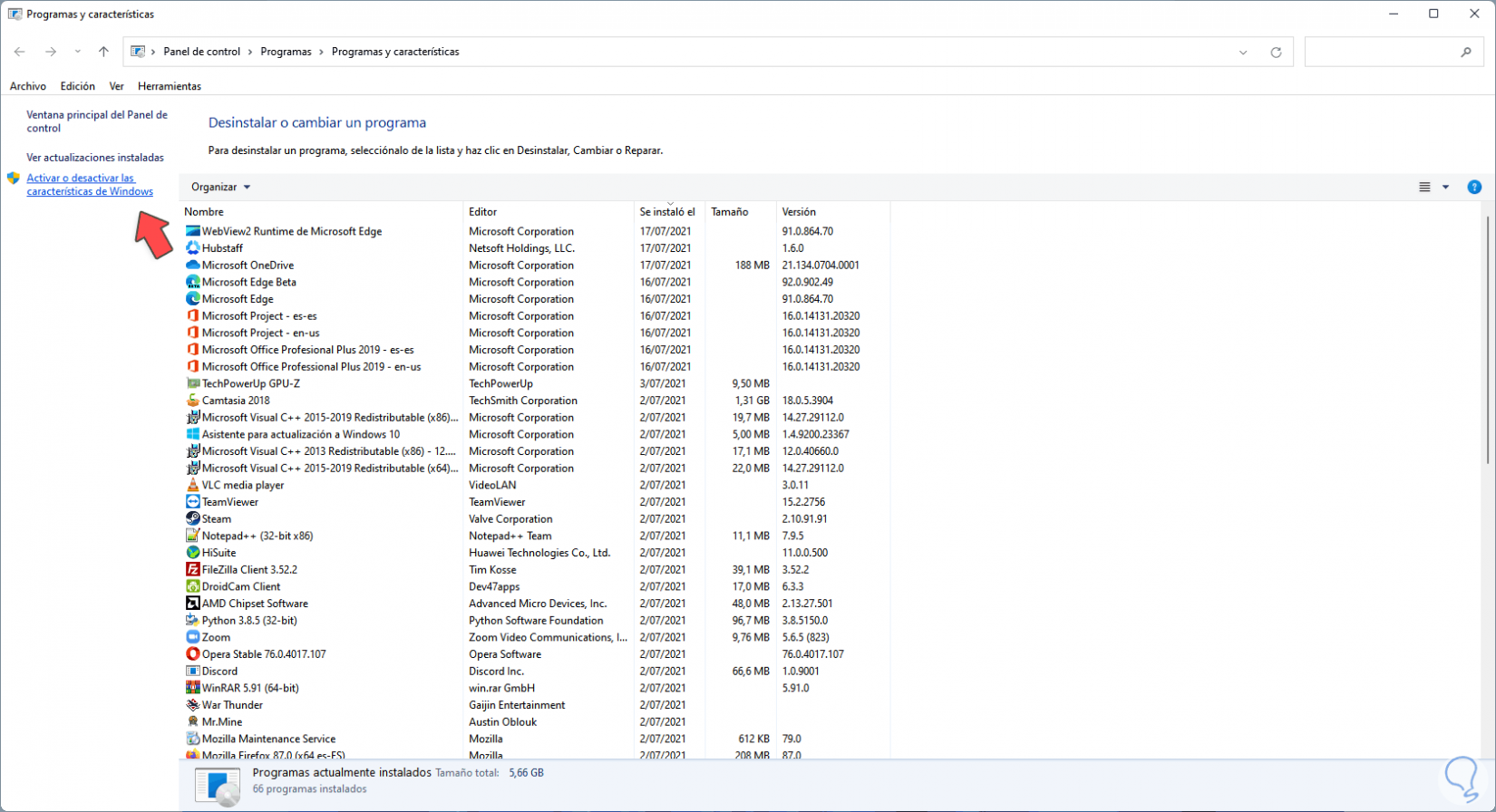 Estas son las opciones disponibles para activar Telnet en Windows 11.
