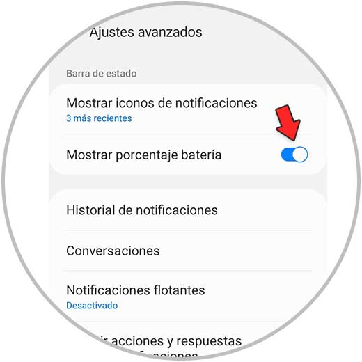 Finalmente tendrás que activar la pestaña que pone "Mostrar porcentaje de batería" para que puedas ver este dato en la barra superior.