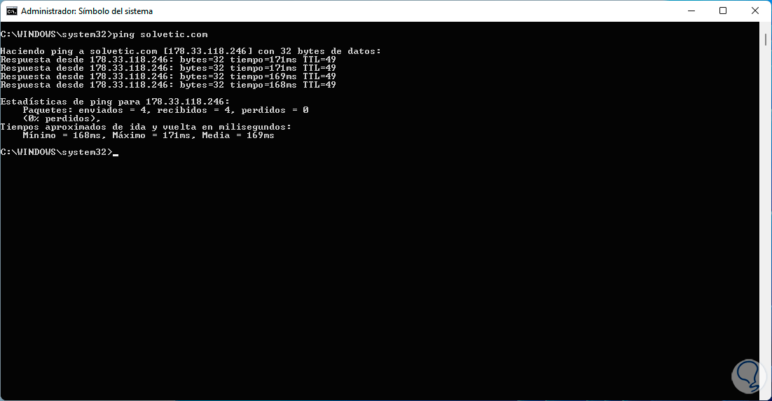 Comprueba que el PING responde a cualquier dirección o sitio web.