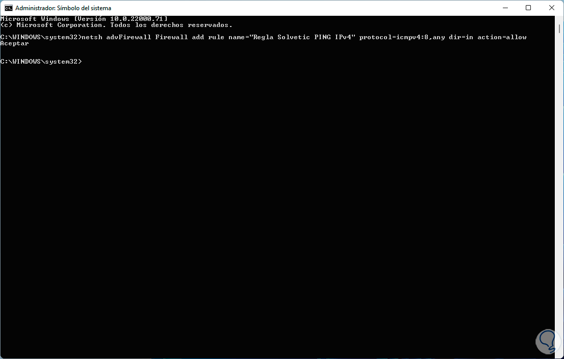 La regla estará deshabilitada impidiendo el uso de PING en Windows 11.