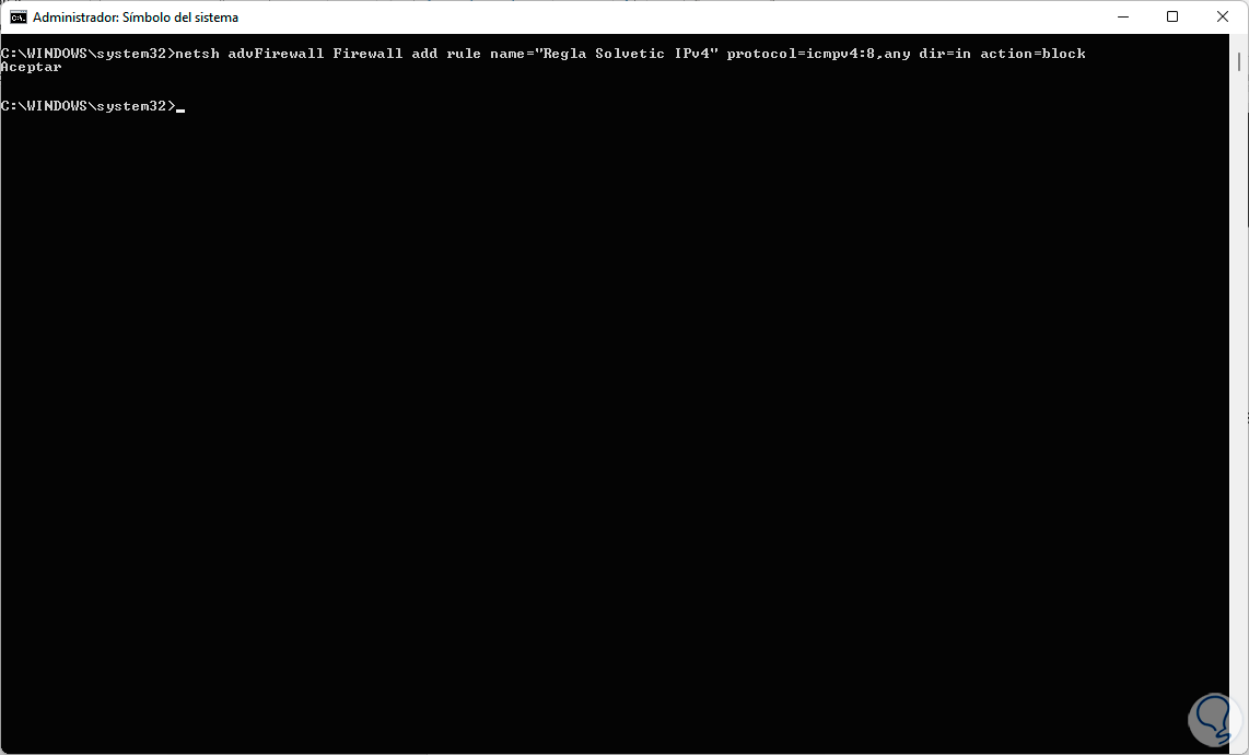 Para deshabilitar el uso de PING desde CMD, accedemos como administradores y para el caso de IPv4 ejecuta: