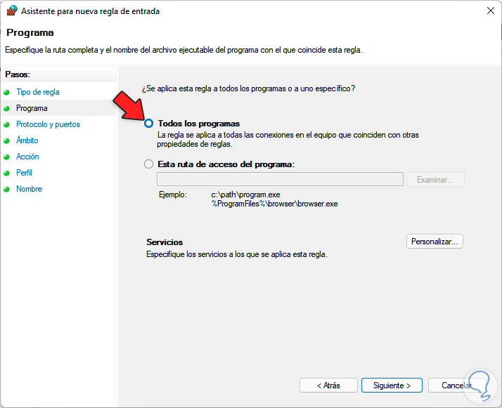 Da clic en Siguiente, allí selecciona "Todos los programas":