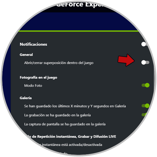 Aquí vamos a desactivar la opción de "Abrir/cerrar superposición dentro del juego"