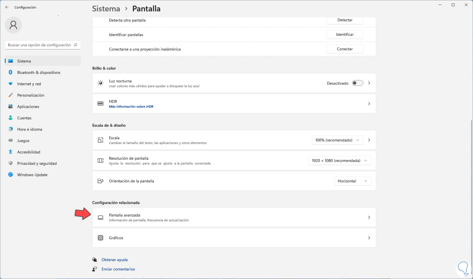 5. Saber tarjeta gráfica Windows 11 desde Configuración de pantalla