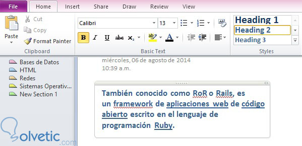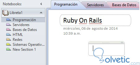 2- Añadimos nuestro texto y ya tendríamos nuestro primer apunte en nuestra libreta digital, pudiendo modificar varios aspectos de este, como tamaño de la letra, formato y color del mismo: