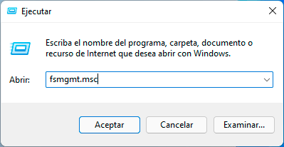 Ingresa "fsmgmt.msc" en la ventana de Ejecutar:
