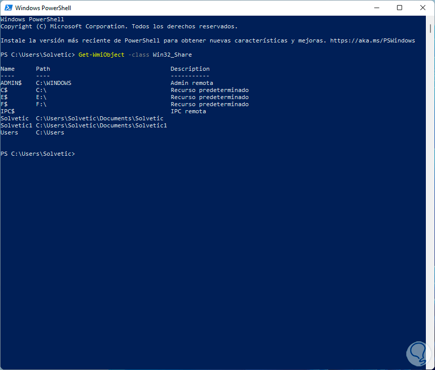 4. Ver carpetas compartidas desde PowerShell Windows 11