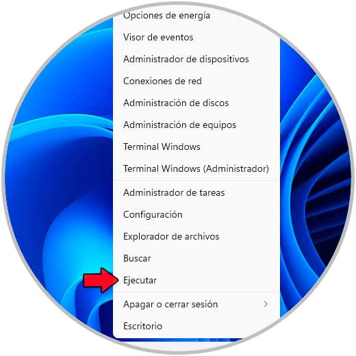 Para usar este método, abre Ejecutar desde el menú contextual de Inicio: