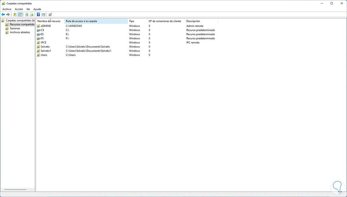 En la consola ejecuta "net share":