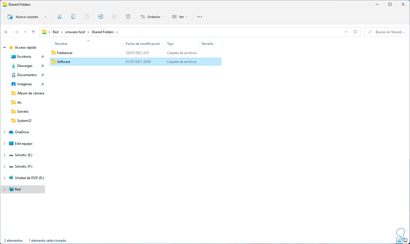 Allí vemos los recursos compartidos en Windows 11.