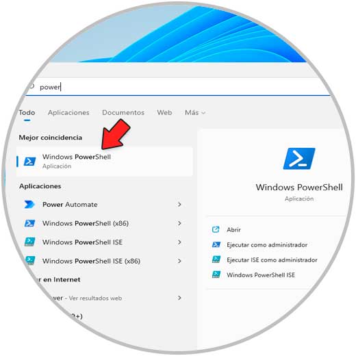 La consola de PowerShell es otra de las posibilidades para ver los recursos compartidos en Windows 11, en este proceso abre PowerShell desde Inicio: