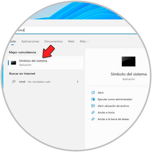 La consola del símbolo del sistema nos da la posibilidad de ver lo recursos compartidos en Windows 11, abre CMD desde Inicio:
