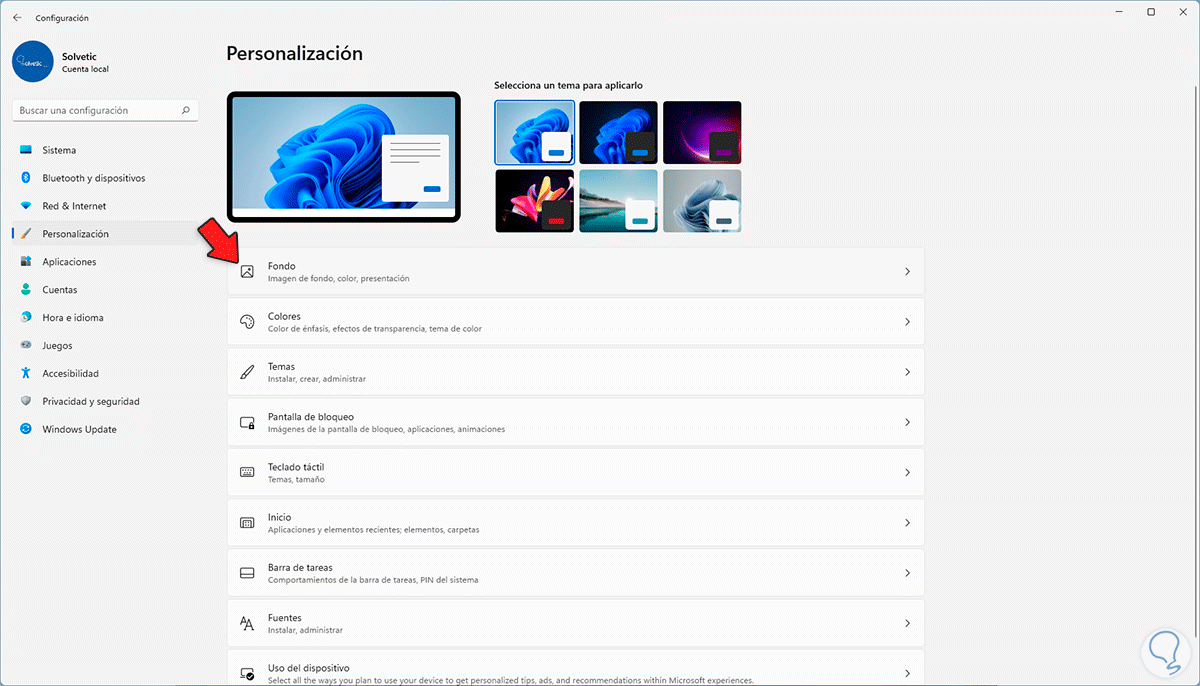 2. Cambiar imagen de Fondo de Pantalla Windows 11 desde Configuración