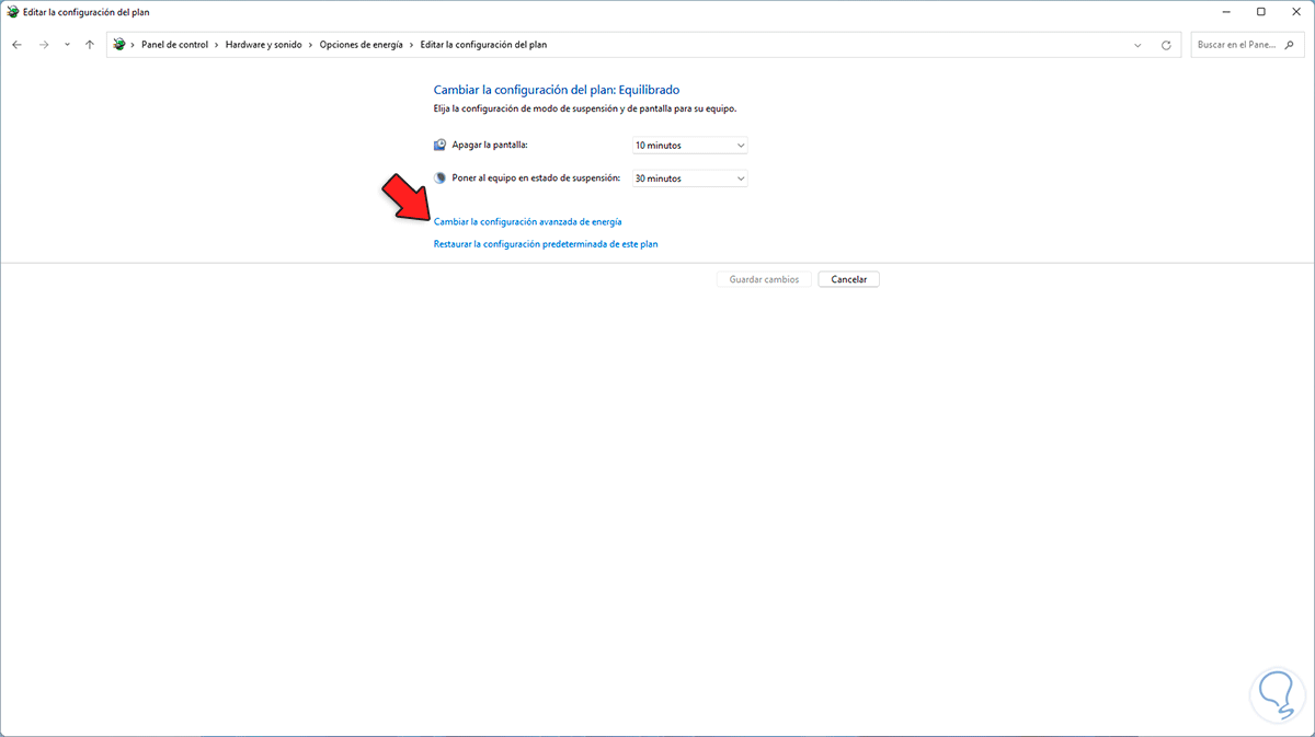 Allí damos clic en "Cambiar la configuración del plan", luego veremos esto: