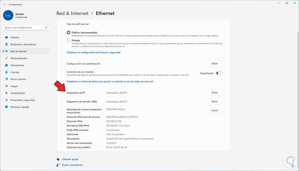 En la línea "Dirección IP" estará la dirección IP de Windows 11.