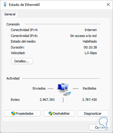 En Ethernet encontramos la IP de Windows 11 en la parte inferior: