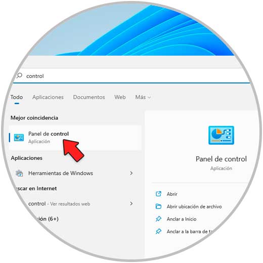 El Panel de control es otra de las opciones disponibles para esta acción, abre el Panel de control: