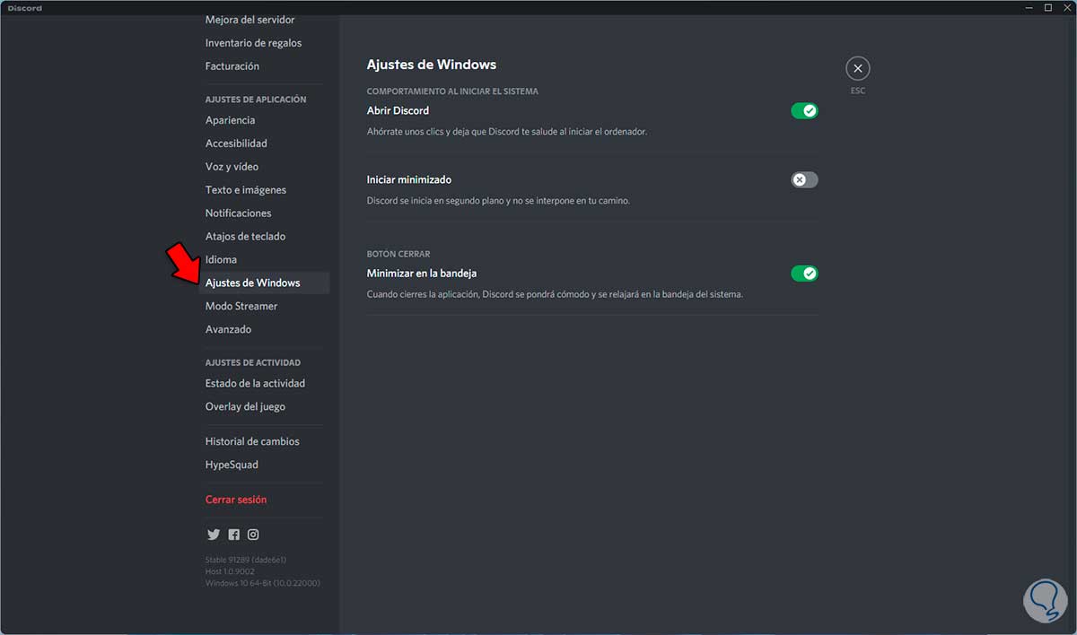 Allí vamos a desactivar el interruptor "Abrir Discord":