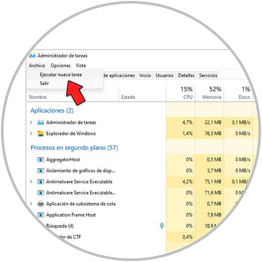 5. Abrir Paint Windows 11 desde Administrador de tareas