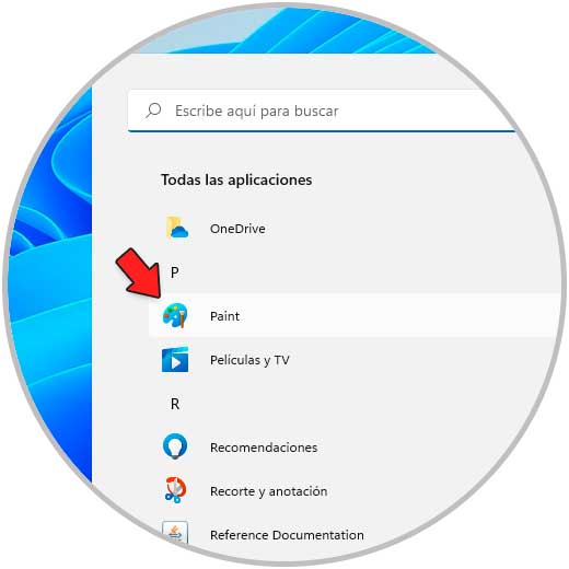 Es otro de los métodos prácticos para abrir Paint, en este caso pulsa en el botón de Windows 11 y damos clic en "Todas las aplicaciones":