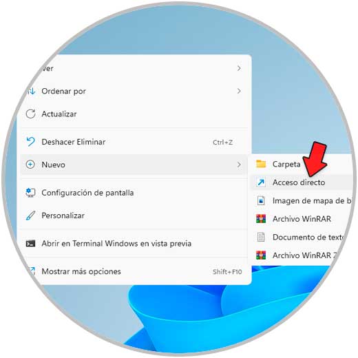 Crear un acceso directo nos permite abrir Paint con un doble clic, para ello, da clic derecho en el escritorio y selecciona "Nuevo - Acceso directo":