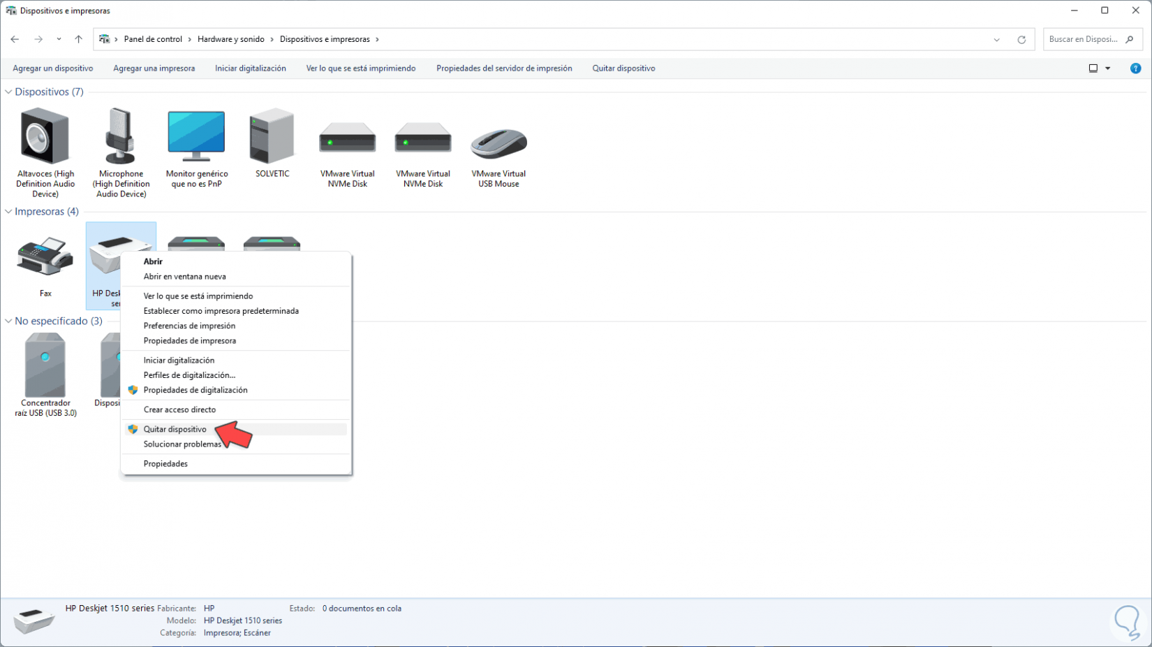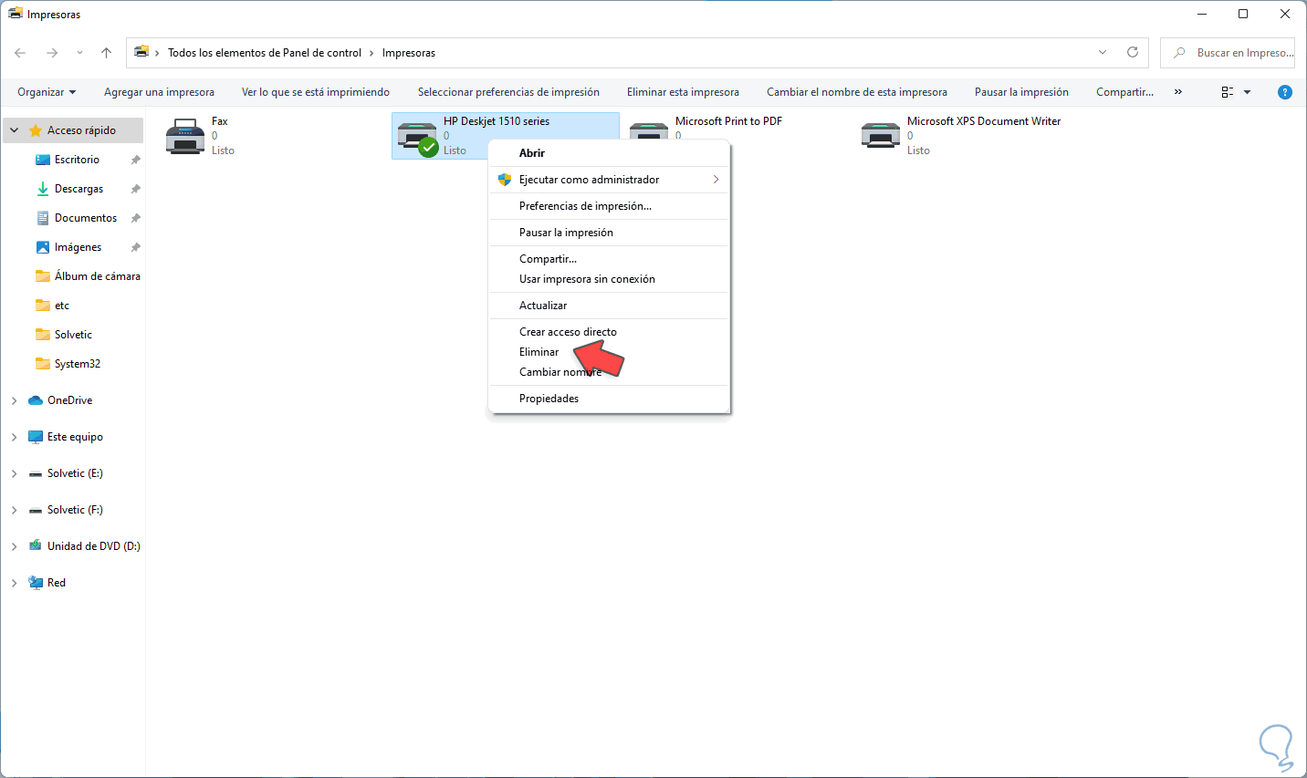 3. Eliminar impresora Windows 11 desde Carpeta de impresoras