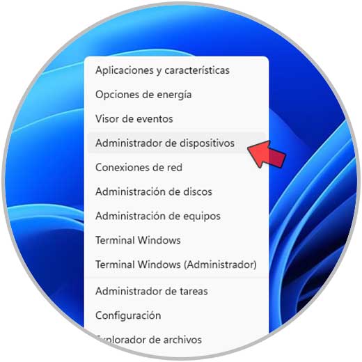 El Administrador de dispositivos es un punto central para controlar los dispositivos y periféricos en Windows 11, abre el Administrador de dispositivos desde el menú contextual de Inicio: