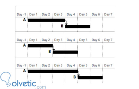 Bajo este tipo de restricciones Project 2013 puede cambiar las fechas de inicio o de finalización de las tareas, normalmente utiliza un enfoque de lo más pronto posible, es decir, que tomará el primer día disponible siguiente al cambio, ya sea para inicio o fin de planificación.