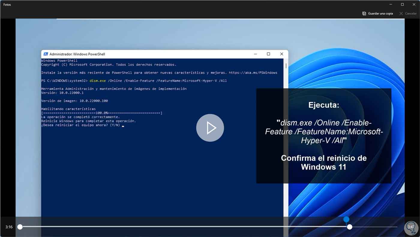 Damos clic en "Guardar una copia" para almacenar el vídeo recortado:
