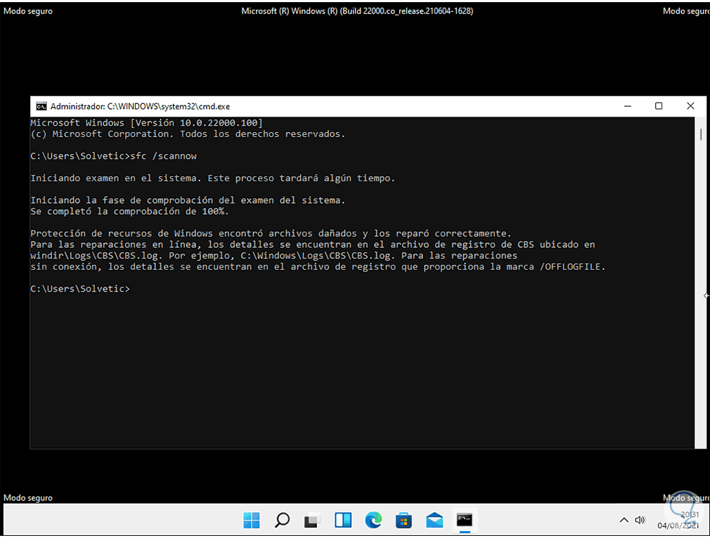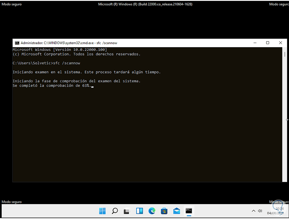 SFC (System File Checker) es un comando desarrollado para analizar el sistema de archivos en Windows 11, al finalizar veremos lo siguiente: