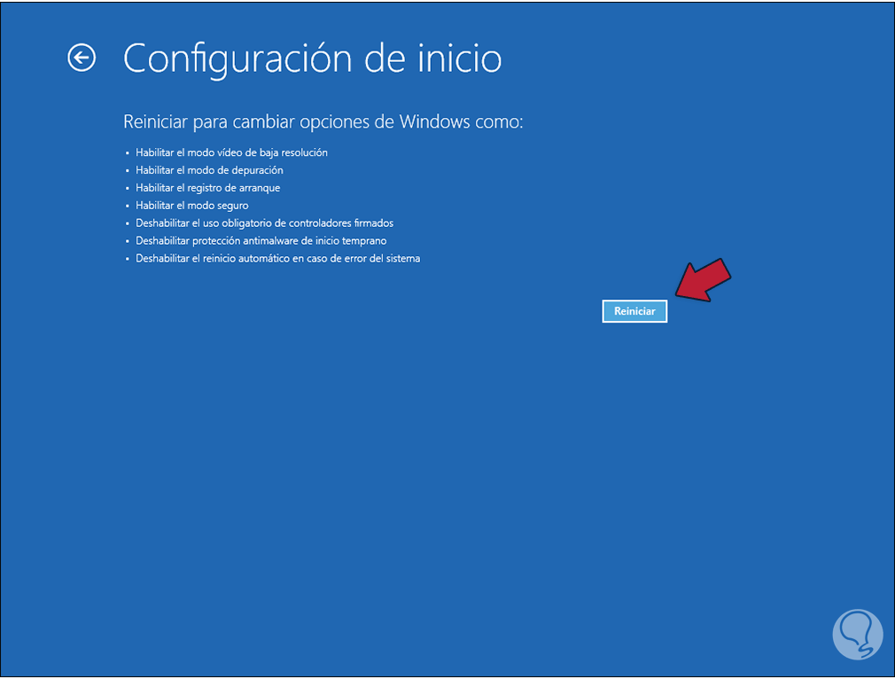 Da clic en "Reiniciar" y después veremos las diversas opciones de uso: