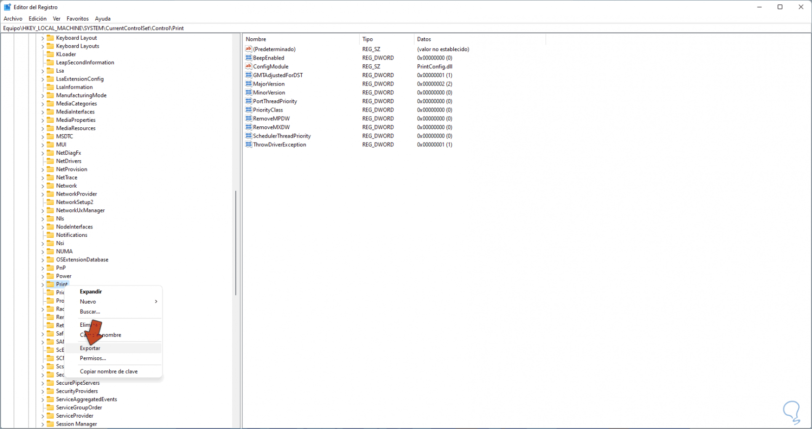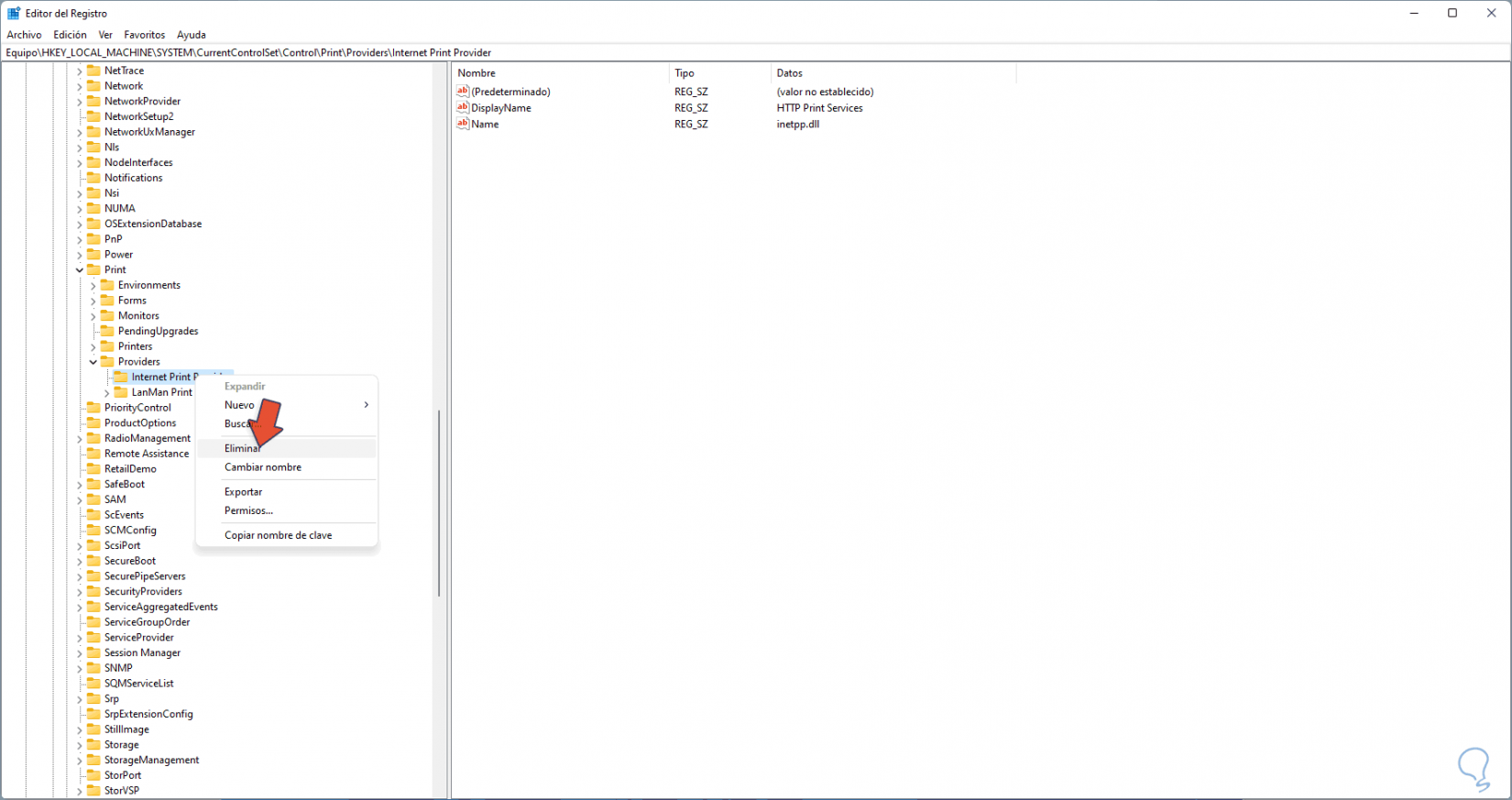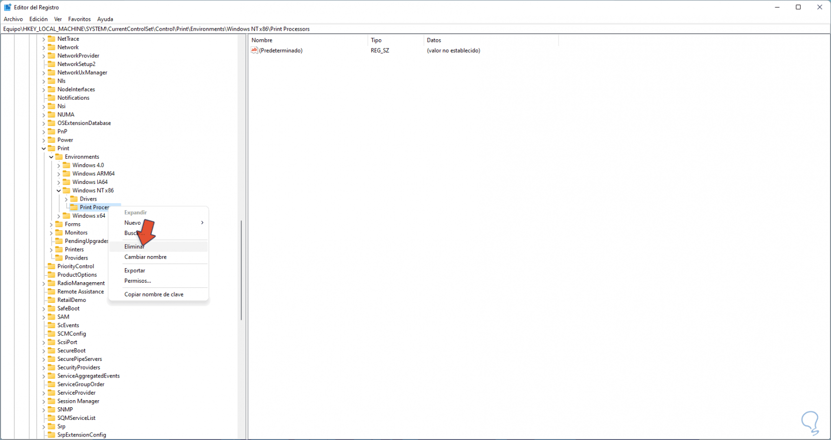 Eliminaremos las claves de las impresoras actuales en Windows 11: