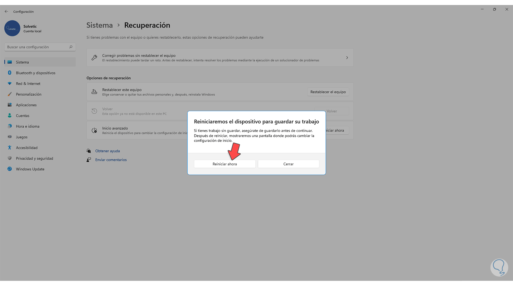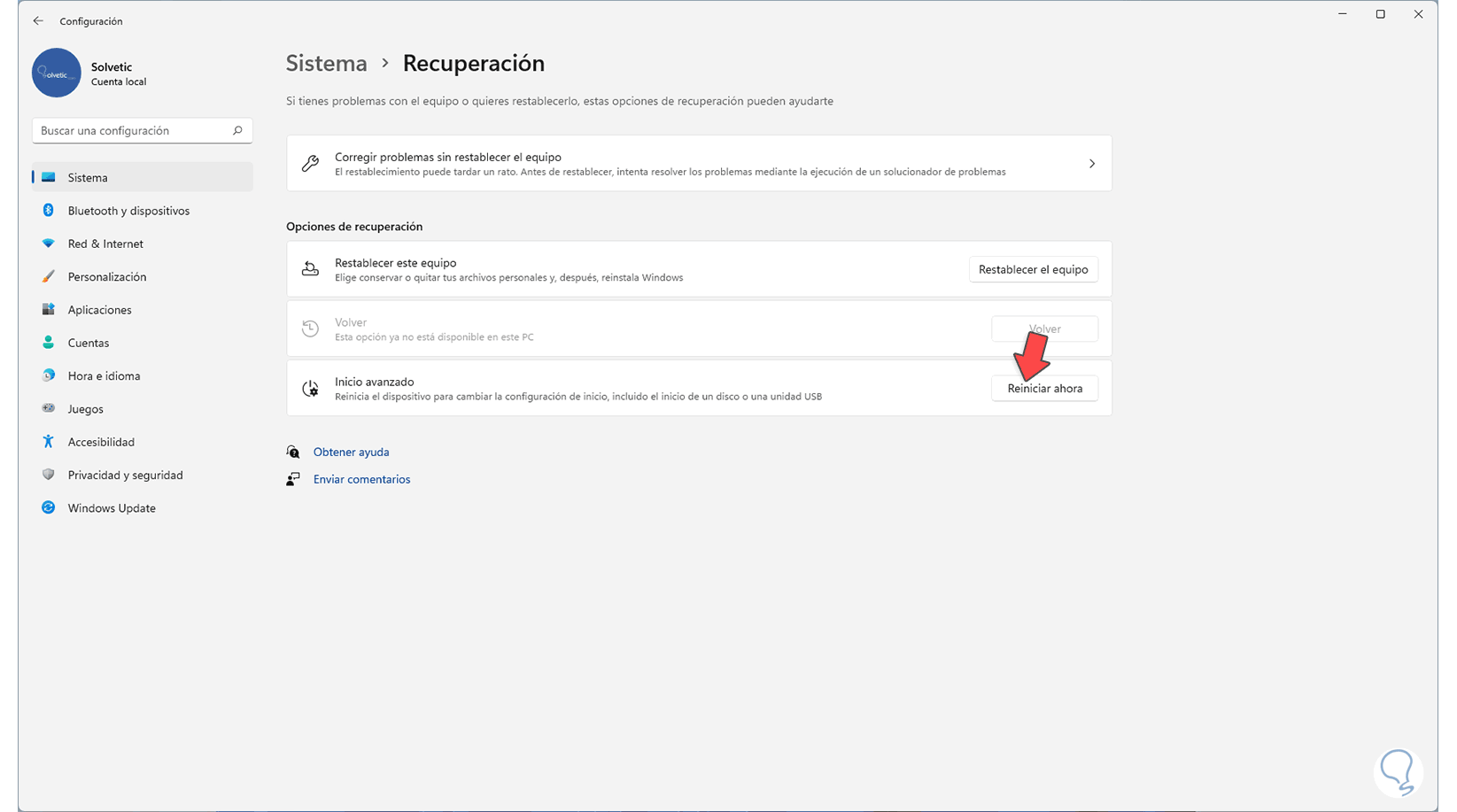 Damos clic en Reiniciar ahora y después de reiniciar Windows 11 veremos lo siguiente: