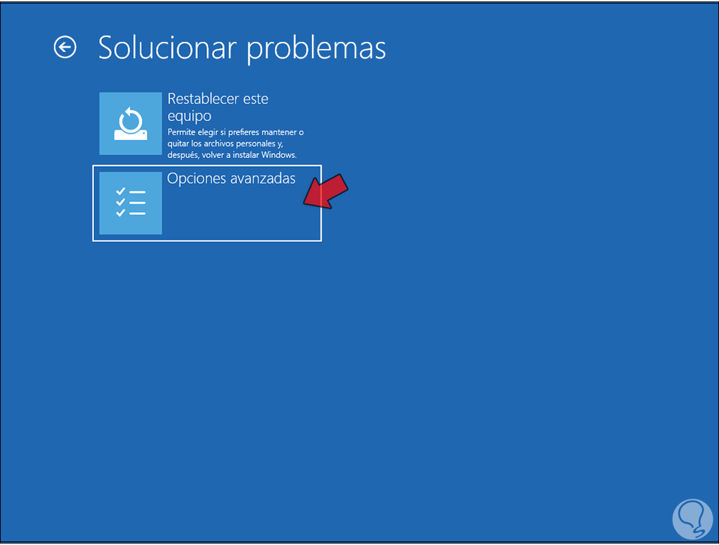 Da clic en “Opciones avanzadas” y luego tendremos las siguientes opciones: