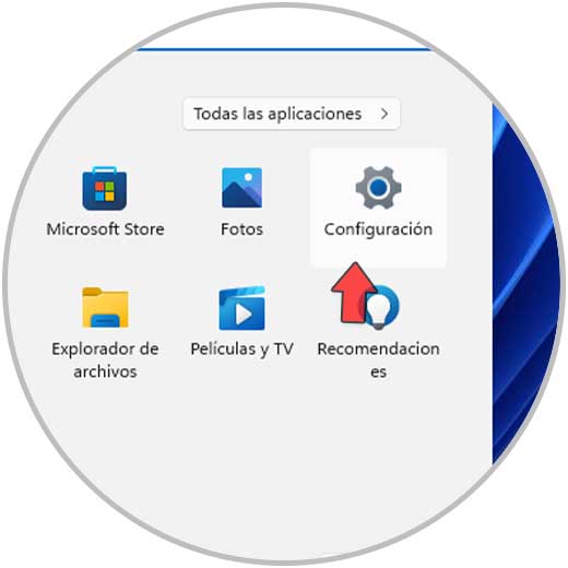 El primer método será desde Configuración, para su uso, abre Configuración desde Inicio: