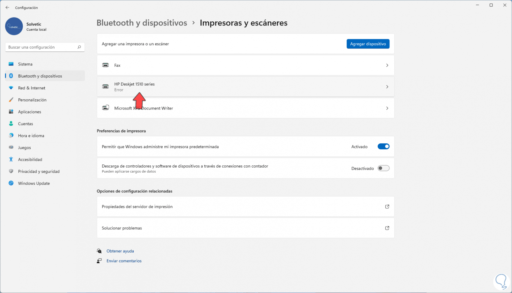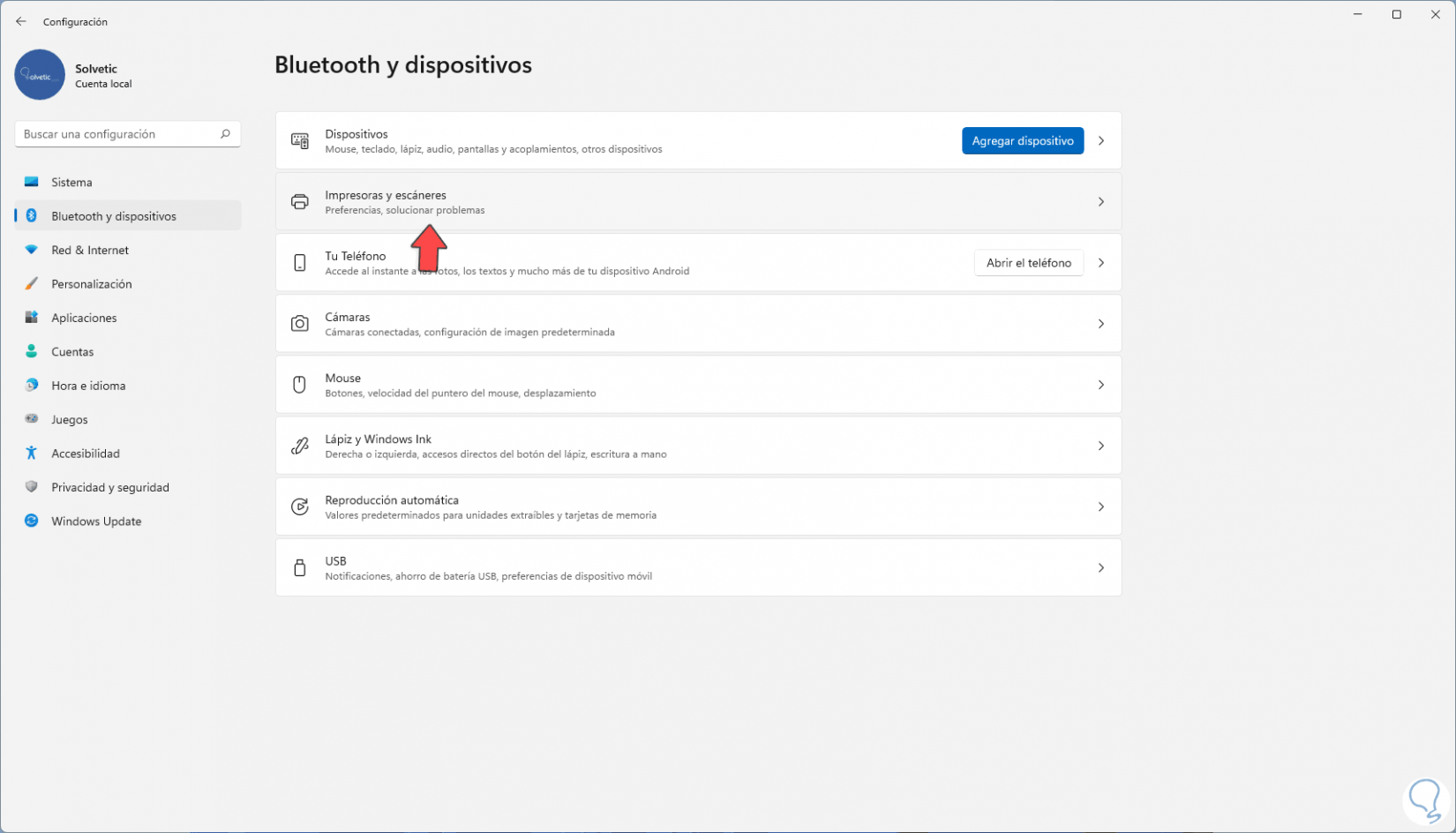 Vamos a "Bluetooth y dispositivos - Impresoras y escáneres":