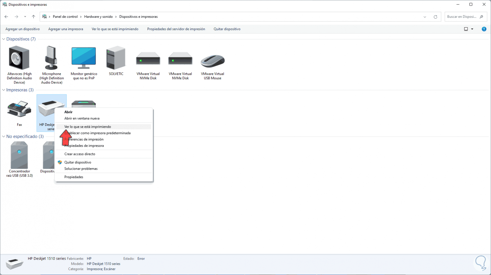 Da clic derecho sobre la impresora y selecciona la opción "Ver lo que se está imprimiendo":