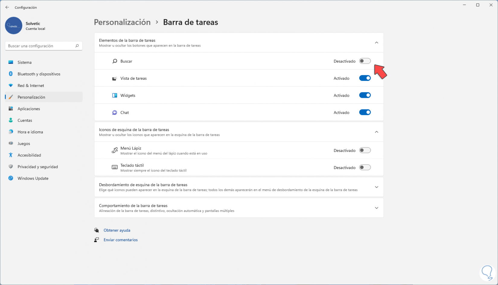 Ocultar o mostrar icono de Búsqueda Windows 11