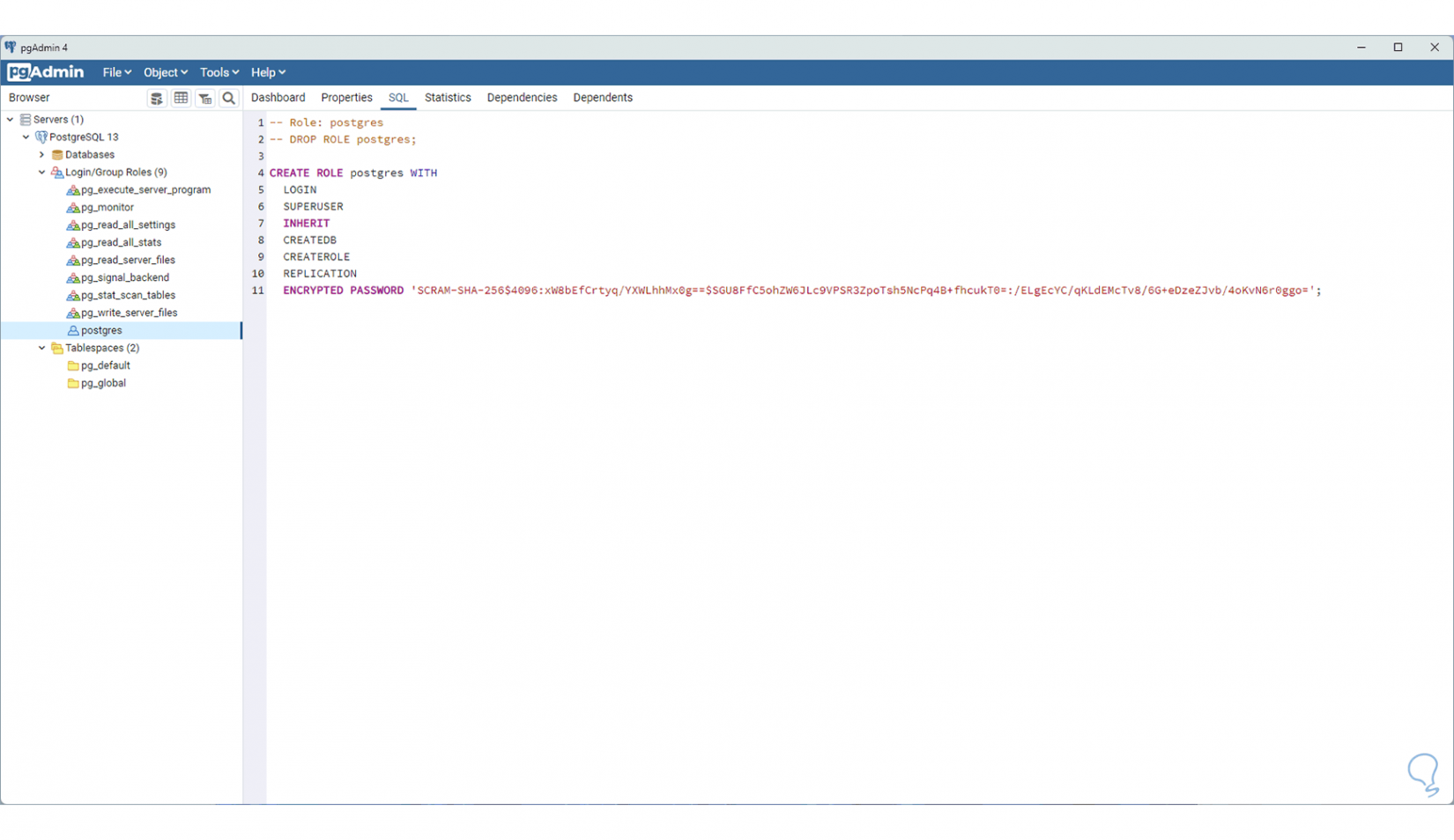 Accede de nuevo al administrador de PostgreSQL y el registro SQL realizado en CMD será visible: