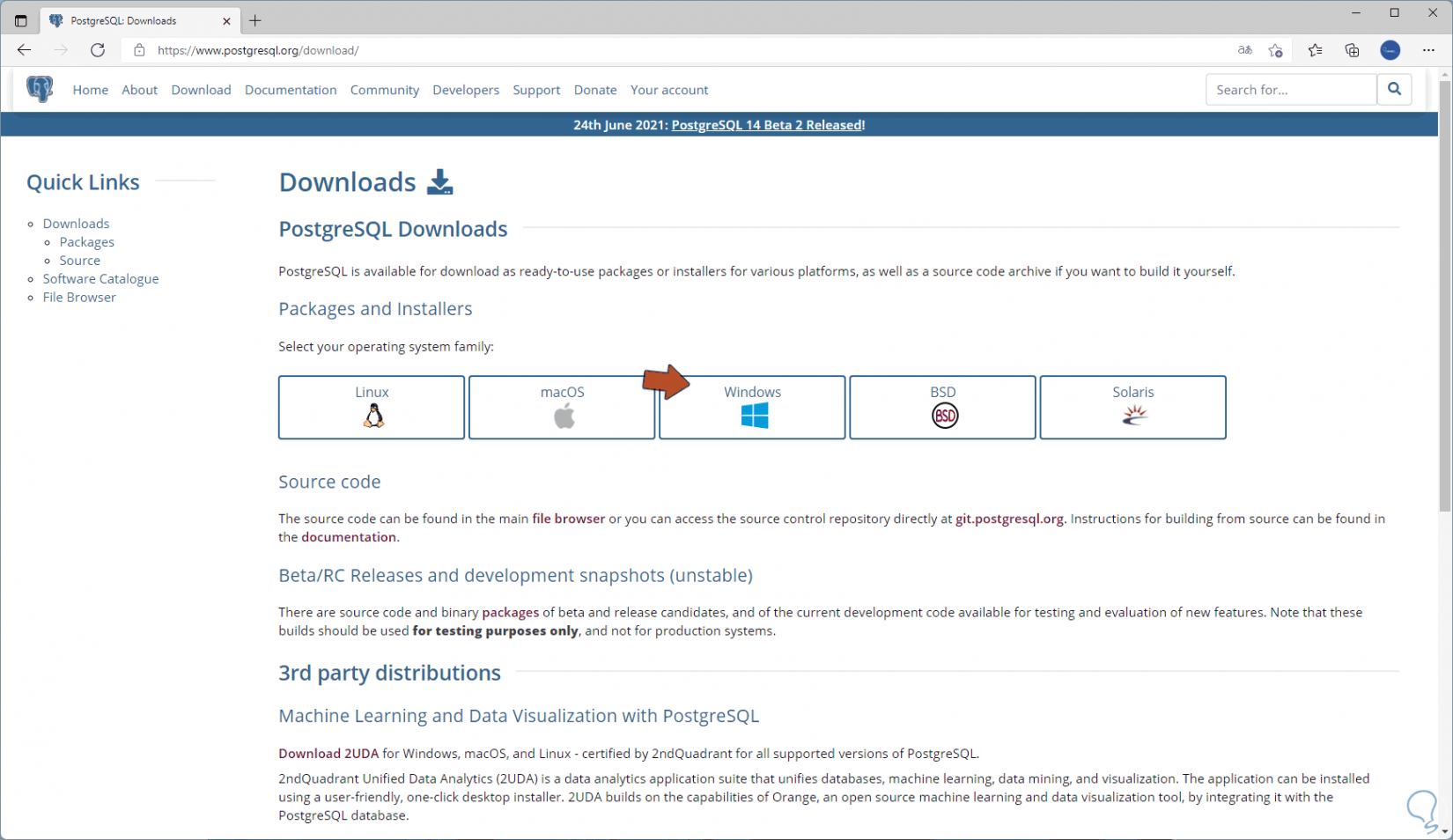 Vamos a la URL de PostgreSQL en el siguiente enlace: