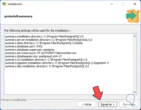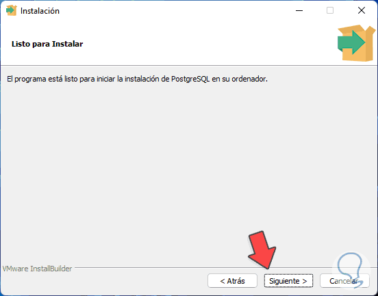 Inicia la instalación de PostgreSQL dando clic en Siguiente: