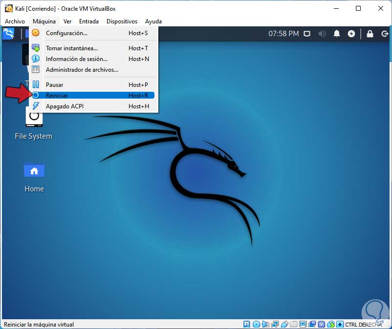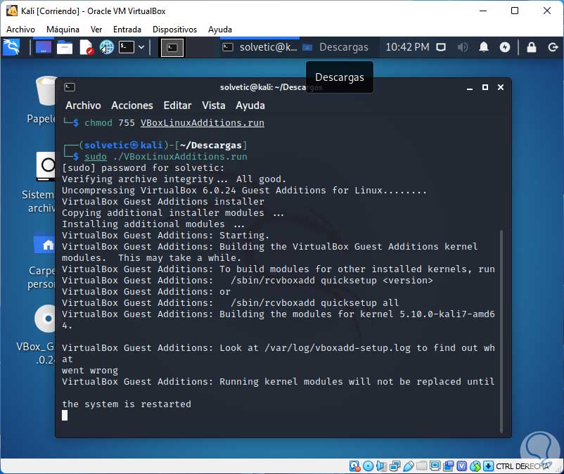 Reinicia la máquina virtual después de esto para completar el proceso: