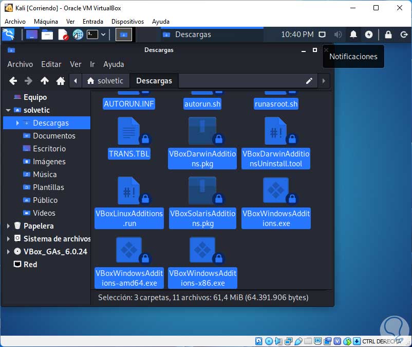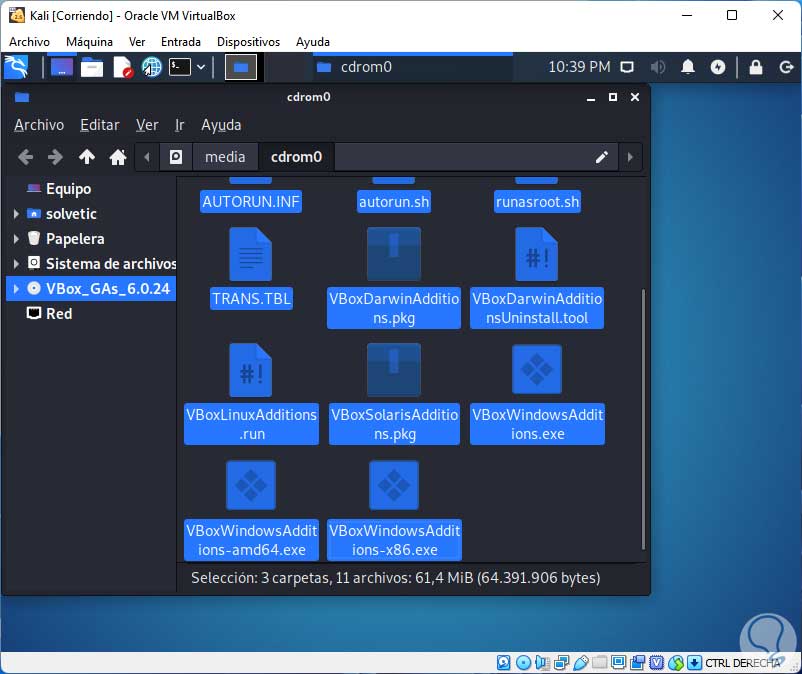 Después de esto abre la unidad de las Guest Additions y copia su contenido: