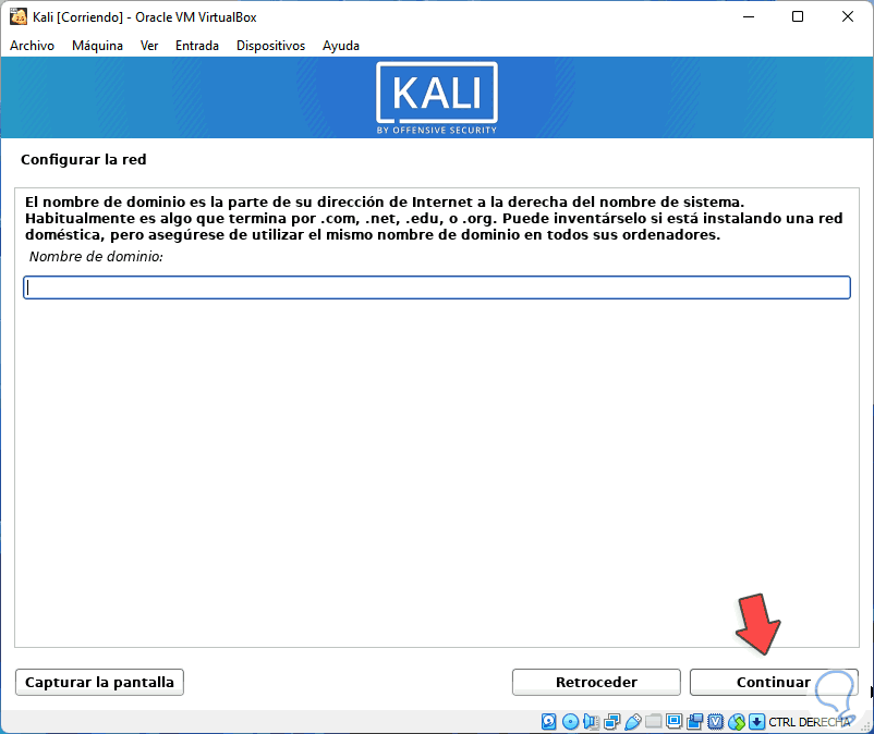 En la siguiente ventana es posible configurar, si lo hay, el dominio. Este espacio puede estar en blanco.