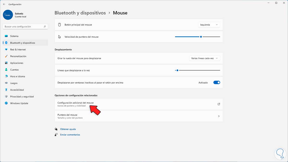 1. Activar o quitar sombra puntero mouse Windows 11 desde Configuración de mouse