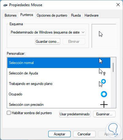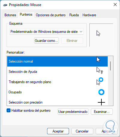 Estas son las formas disponibles para activar o no la sombra del puntero del mouse en Windows 11.