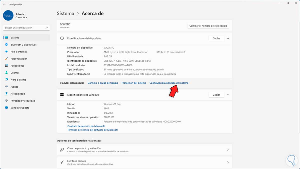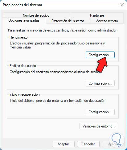 2. Activar o quitar sombra puntero mouse Windows 11 desde Configuración avanzada del sistema