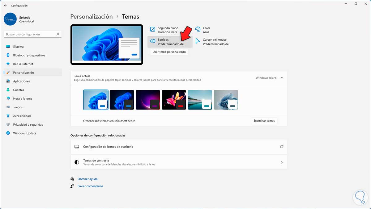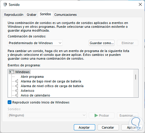 Da clic en "Sonidos predeterminados de Windows" y será abierta la siguiente ventana: